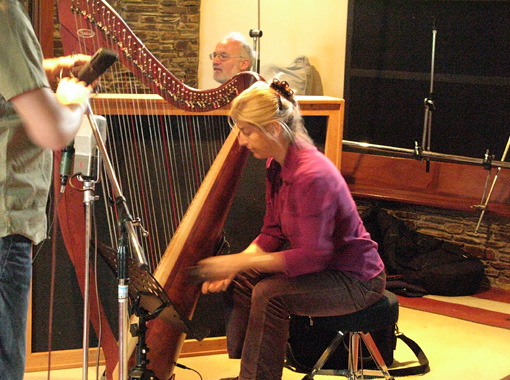 スタジオ・ブース(ミュージシャンが演奏をする部屋)の音がコンソール・ルーム(調整・モニター用の部屋)に返された瞬間、力強いケルト・サウンドが響きわたりました。私のイメージ通りの音がそこにありました。音の主は、コーンウォール・ケルト音楽の第一人者マイク・オコーナー氏。伝統音楽の研究で〝サー〟の称号を付与されている音楽家です。今回のサウンド・プロデューサーをお願いしました。その素晴らしいサウンドに私は思わずコンソール・ルームの窓からスタジオ・ブースに向かい、体ごとOKサインを出していました。
