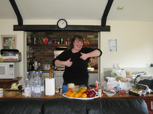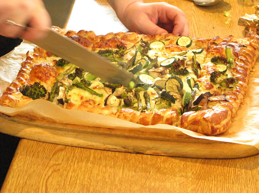 スタジオに突然声が響いた。レコーディング中の食事を一手に引き受けてくれる若き肝っ玉かあさん、サマンサがスタジオに食事の催促にやってきたのだった。 スタジオ・オーナーの親戚でコーンウォール生まれのサマンサは、小さな頃から家族と一緒に世界各地を旅して来た。だからいっさい人見知りをしない。そして、世界中の料理が作れるようになったと紹介された。彼女の料理と仕切りのうまさは地元でも一目おかれているようでした。上の写真は彼女が作ってくれた野菜のパイ。とても美味しかったです。