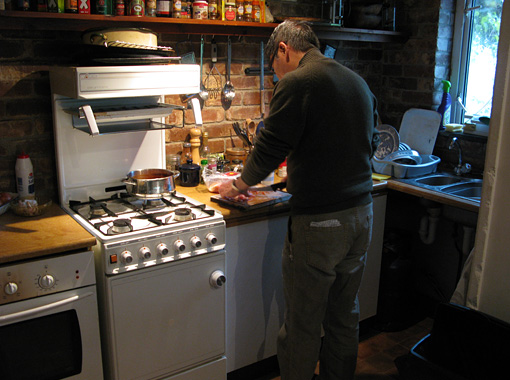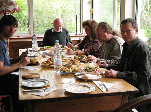食事の時はいつも、全員が円卓の騎士のように並んで和気藹々と話をしながら食べます。サマンサの料理自慢とサー・マイクのケルトの歴史話を聞きながら、笑いの絶えない家族的な楽しい食事でした。日本のレコーディングは効率第一で、食事はほとんどが出前です。今回のようにスタジオで料理を作って食べる事は全くないと言っても良いと思います。また全員で外に食べに行くことも少ないように思います。ヨーロッパのレコーディングでは全員揃ってレストランに食事に行く場合がほとんどです。勿論出前で済ますこともありますが、食事としてちゃんと時間をとるのが普通のようです。仲間として当然のことなのですが、こんなところからも音楽に対しての姿勢の違いを感じました。