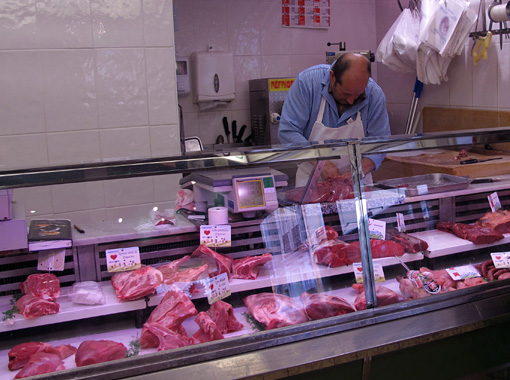 肉屋さん 新鮮な肉の部位が沢山並んでいます