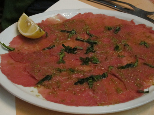 牛肉のカルパッチョです。あまり印象に残らなかった品です。やはりカンペールでは海鮮料理が一番のような気がしました。