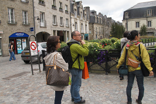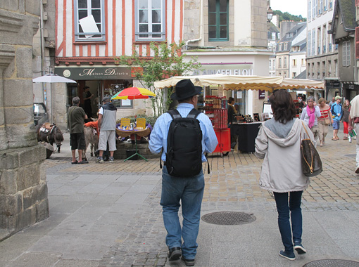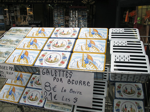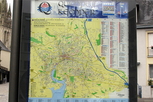 撮影のために4日間滞在したカンペールとも今日でお別れです。昼食後は今回のレコーディングスタジオのあるブレストに移動します。ブレストはここから北に65kmほどのところにあります。車で1時間半くらいの距離です。ブレストでは殆ど時間がない予定なので、今日は出発までの合間を縫っておみやげを調達することになりました。荷物をパッキングして出発までは2時間弱。昨晩徘徊して探した気になる店を目指します。まずは地図で確認。それほど広くない街なので徒歩でまわります。