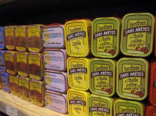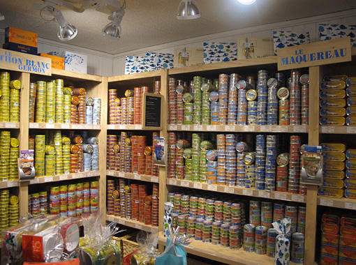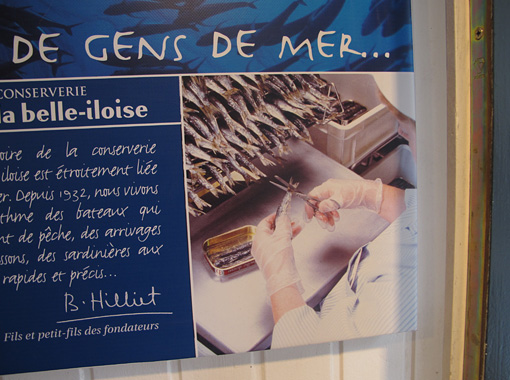 壁に目をやると鰯の尾や頭を落とす缶詰行程を手作業でやっている写真が飾られていました。この数日感じた丁寧で職人を大切にする、手間を惜しまない土地柄が感じられとても好感のもてる表現でした。ブルターニュ地方は昔から鰯漁が盛んで最盛時には120もの鰯(サーディン)の缶詰め工場があったそうです。今では50ほどになってしまったようですが、世界各地に輸出されているそうです。缶詰というとすべてオートメーションで作られた安易なものと考えますが、こう言った作業写真を拝見するとお土産に値する価値のあるものだと気づかされます。