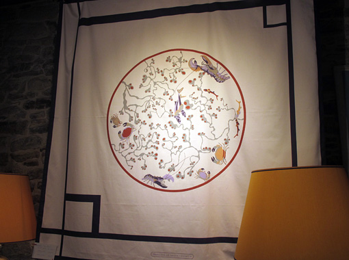 壁から下がったテーブルクロスとその前にはランチョンマットやキッチンクロスなど様々な綿製品が並んでいました。この手の商品はバスク産が有名ですが、値段を見てみるとバスク布の半分程度でした。手にとって見るとバスク布と同じように軟らかく上質な手触りで、堅くよった綿糸をしっかりと打ち込んだ高密度な布を使用していました。バスク布はその構造からワインやバルサミコなどでシミをつくっても60度以上のお湯で洗うとほとんど跡が残らないくらいきれいになります。この布も同じような効果があると思いました。さすがにヨーロッパの文化、土産には大変良さそうな品でしたので、さっそくランチョンマットを買い求めました。テーブルクロスを買ったスタッフもおりました。