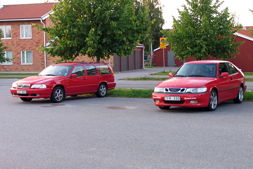駐車場にスウェーデンが誇る車メーカー、ボルボとサーブの同じ色の車が二台並んで駐車してありました。まったく別会社のデザインですが同じ会社の車といっても良いほどデザインテイストが似ているのがとても面白く感じました。この辺も北欧デザインの流れでしょうか。