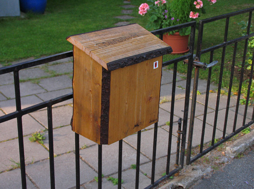 こちらは茶色のポストでした。わざと木の皮の部分が残った板をとても良いバランスで組み上げています。日曜大工でも作ることができそうですが、この配色のセンス、全体のバランスにはしっかりしたデザイン力を感じてとても感心しました。