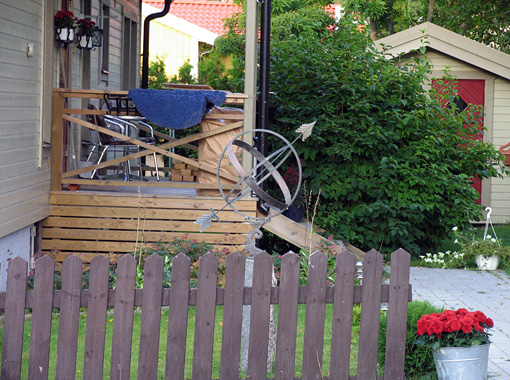 こちらのお宅はウッドデッキをハンドメイドしたようです。先ほどの庭もそうですが、無造作と言えば無造作なのですが全体の色と空間がとても良い感じです。