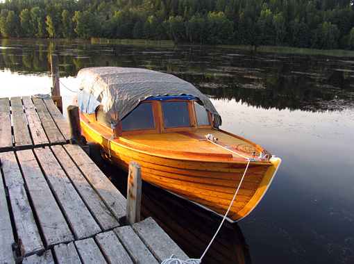 桟橋まで歩いて行くと、この素敵なボートが係留されていました。ここまでは1時間程度、ホテルから2kmもない距離です。ご紹介したのはほんの一部です。写真をご覧になって皆さんもお感じになられたと思いますが、ほっとするデザインのようなものを私は感じました。自然素材を生かしたシンプルでモダン、なおかつ精緻。他のヨーロッパとは少し違った感覚を受けました。日本の伝統の中にある美意識と共通な意識を感じ、とても不思議な感覚に襲われました。これからの数日の旅に大きな期待が膨らむ朝でした。次回は不思議で美しいノルテリエの風景をご案内致します。どうぞお楽しみに。