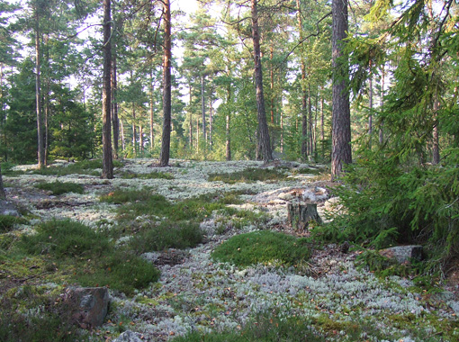 遠くから見ると木々が密集しているような森も中に入ってみると明るく下草も豊富に生えています。おとぎ話に出てくるような森には、白いこけのような植物が繁茂し、その間にブルーベリーやリンゴン・ベリーが一面に広がっていました。思わず白雪姫の物語を思い出しました。
