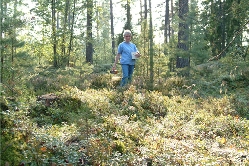野生のブルーベリーです。森の中辺り一面に広がって自生しています。実は野生種のブル-ベリーにはビルベリーとローブッシュ・ブルーベリーの2種類があるようです。私たちがブルーベリーだと思ったのはビルベリーという種類でヨーロッパに多く自生するベリーでした。