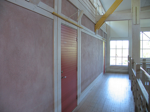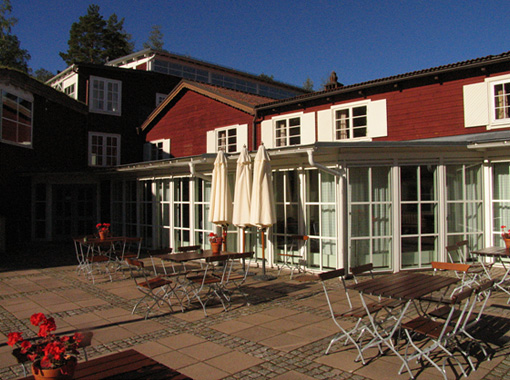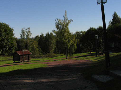ここが中庭です。先ほどの屋根以外はよくあるスウェーデンの建物です。興味深いのは、この外壁に小豆色ですが、ダーラナの建物はすべてこの色に統一されていました。ヨーロッパとは異なり、木造の家が多いスウェーデンですので、昔は防腐剤の色だったのではないかと思いました。