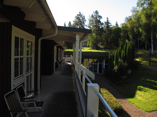 そんなダーラナに面白いホテルがあるとの話で今回はギレネー・ホーネット・ホテルに宿泊することになりました。このホテルは、シリアン湖の東にあるレッドビークという街とレクサイドという街のちょうど中間くらいの湖畔エリアにありました。ホテルに着いて驚いたのは、草屋根作りの屋根をもつ、とても変わった建物でした。
