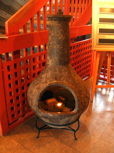 レストラン脇のインテリアです。このストーブだけが温かみを感じるインテリアで、とても不思議な印象でした。