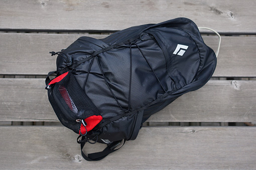 デイジーチェーンにゴムコードにドリンクポケット。随所に施されたギミックによって16Lのサイズ感ながらデイパック以上の収納力を持っているところが、旅の様々なシチュエーションに対応する使い勝手を実現してくれます。滅多にないですが、最大限に荷物を収納するとこんな感じに。