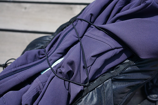 デザインのアクセントになっているゴムコードもまた単なる飾りではありません。頻繁に脱ぎ着する上着やシャツなどを挟んで外付けすることができます。ゴムコードはその性質上、どうしても劣化が避けられないものですが、手芸用品店などでも簡単に手に入るので伸びたり切れたらすぐ交換できるのも気軽に扱えて嬉しいところ。気分転換にゴムコードの色も替えてみればバックパックの見た目の印象も大きく変わることでしょう。