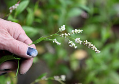 「青は藍より出でて藍より青し」といわれる藍は、青い染料が採れる植物の総称。タデアイ(タデ科)・インドアイ(マメ科)・リュウキュウアイ(キツネノゴマ科)・ウォード(アブラナ科)の4種類があり、これらの草木は青い色素(インディゴ)の「モトになる成分」を持っています。つまり、藍草の中に青色はなく、空気と光に触れてはじめて青くなるモトがあるだけ。この青色成分をとりだして染めるわけですが、インディゴは他の植物染めの色素と違って水に溶けないため、そのままでは染料になりません。ところが面白いことに、このインディゴ、発酵すると水に溶けるようになるのだとか。藍の葉には、藍を染料にするために有効な菌(藍還元菌)が寄生していて、この菌の好むアルカリ性の環境に整えると菌が活性化し、それによって発生した酵素が不溶性のインディゴを水溶性に変えるため、染色が可能になるのです。