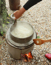 一方、ご飯をおいしく炊くことにも一所懸命です。その日に使うだけの量を炊く直前に自分で精米する人、自分の好みに合わせて七分搗き五分搗きなど精米歩合を変える人、米はもちろん仕掛けの水にもこだわる人...と、いろいろ。炊飯器も、おいしさを競って、どんどん進化しています。