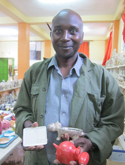 (スタンレーさん)12歳から学び始めました。徐々に習って、真似をしながら実際に作って学びます。我が家では、父親も祖父もこのソープストーンの彫刻の職人でした。
