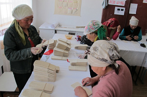 In this way, local technical leaders give technical instructions to local producers. That's fine! An efficient production framework has been built up! No, that's not so simple actually, they said. Technical leaders sometimes failed to convey information to producers. Production practices specific to a particular local technical leader were extended to all producers belonging to the same group, with the result that all products were rejected. Such difficulties continued. However, all people did not give up. Monitoring sessions often failed to end on time. The monitoring session for the last group of the day often proceeded till late at night. Both producers and monitors assiduously and carefully discussed problems to solve them till late at night. Sometimes, they argued against each other and some received complaints from their families. With all these efforts, they advanced gradually until the quality of products was improved. It seems that the JICA Kyrgyzstan staff, who support the local sites, feel that it is the first time for local producers to experience the deepening of person-to-person communication and relationships, while continuing such assiduous work. Since people who were not interested in other people or other villages do collaborative work, they may require a number of years to build a reliable local organization. On the other hand, local people think this way: "Given the specific purpose of delivering products that are being processed by hand, we may be happy because we have opportunities to accomplish something in concerted efforts of all local people. Whether these opportunities can be used in any way for Kyrgyzstan to grow is up to Kyrgyz people." We can feel such thinking of the Kyrgyz people when we see a large number of voluntary and creative improvements at production sites.
