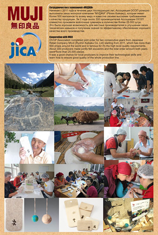 2.In November, 2012, an OVOP store opened in Bishkek the capital of Kyrgyz. This store functions as a showroom for the products produced through OVOP projects. Here, the manufacturers will be able to earn income and also analyze sales results to develop better selling items. MUJI will support the opening of the OVOP store by purchasing 200 pieces and exhibiting details of the MUJI-JICA project on panel boards.