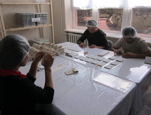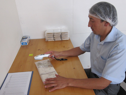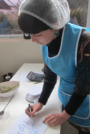 This year, the Kyrgyz members have taken a big step in not only introducing new products but also reviewing the production process. Until last year, newly produced products were shipped to Japan for inspection, packaging, and tag-labeling before being sold in stores. This year's biggest challenge for the members was to finish inspection and packaging of end products for themselves. We advised them how they can prevent any mistakes in a series of processes, including product inspection, packaging, tag-labeling, and shipment.