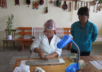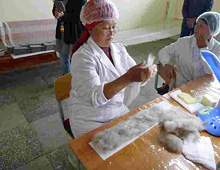 In post-socialist Kyrgyz, the various social systems corrupted once. Under such circumstances, even though there are a number of sheep, securing the wool material for felt has not been easy in the past two years. Therefore, the local office members have made every effort to secure the wool for felt in Kyrgyz.