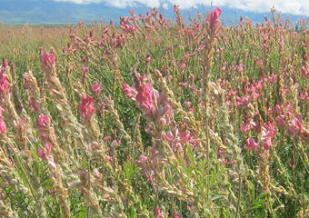 Sainfoin is a plant that has pink flowers shown in the below picture.