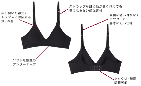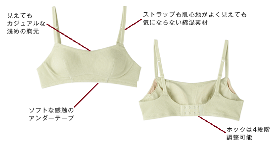 - ・ストレッチ天竺ノンワイヤーブラジャー 綿92%、ポリウレタン8% MLサイズ 1,980円(税込)