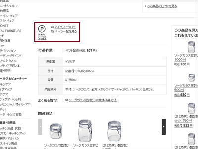 2、別売りのパーツがある場合は、「別売りのパーツ」のアイコンと「パーツ一覧を見る」のご案内が表示されます