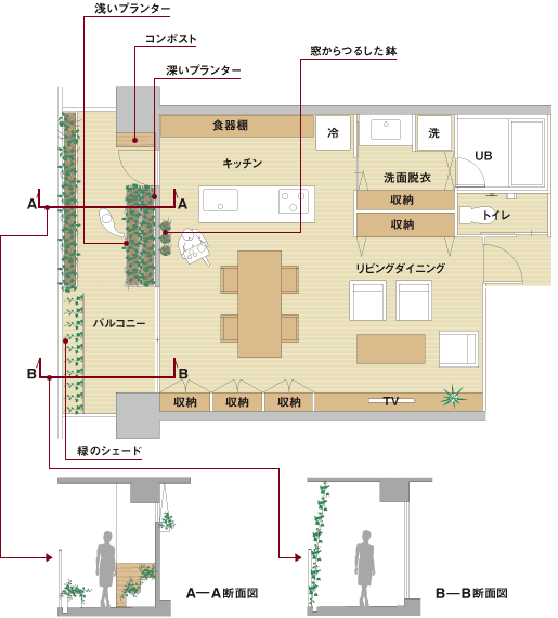 ご自宅の庭で、こうした家庭菜園を楽しんでいらっしゃる方も多いでしょう。今回は、ベランダでも楽しみたいという方のために、間取りを考えてみました。