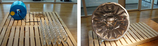 そのほか、足で漕いで水を汲むポンプ、太陽光を利用した調理器具(画像右下)、細い枯れ枝でも熱を逃がさず効率的に調理できる器具、汚れた水をきれいにする道具などなど。生活に必要な道具や医療器具なども並んでいました。
