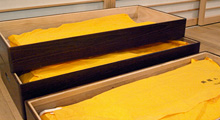 収納家具が日本で使われるようになったのは、江戸時代のこと。それまでは木の箱などに入れていましたが、引き出しや扉が付いた、いわゆる「箪笥」の形になったのは、そんなに古いことではありません。初期の箪笥は手間とお金をかけてつくられ、とても庶民の手に届くものではなかったようです。