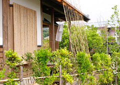 昭和40年代ぐらいまでは、南面に縁側をおおう深い軒がある家をよく見かけました。夏の強い陽射しが、家の中まで入らないようになっているのです。開口部は大きくとられ、外側から雨戸、ガラス戸、障子と三重の戸がつけられているのが常でした。そして、北側には小さな窓があり、風が南から北の方へ抜ける仕組みです。風は体感温度を下げてくれます。さらに南側に庭の緑があれば、その中を渡ってくる風は、温度が低く下がっています。田園地帯の家に行くと、暑い真夏でも夜になると涼しい風が吹いてくるのは、「家のつくり」が生み出すものなのです。