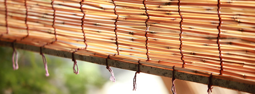 「よしず」は「よし」「あし」とも呼ばれ、茅(かや、別名:ちがや、すすき)と同じイネ科の植物。いずれも、茎の部分が中空になっているので熱い日差しにあたっても温度が上がらず、雨や風にも強いところから、茅葺き(かやぶき)屋根の材料として大量に使われていました。江戸時代までは各地の水際に大量に生息していたようで、東京の「茅場町」という地名も、そのなごりとか。よしずで囲う「よしず張り」は、いまでも家の外などで日除け用に使われていますし、よしず張りの海の家は夏の風物詩にもなっています。