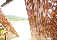 風を通すのはもちろんですが、よしずの特徴はなによりも、光を遮ること。その視覚的な効果も、涼しさを生み出す大きな要素です。細いよしずの間から漏れる光は、影ができることによって、光そのものを意識させてくれます。それは、明るく均一な光にはない、陰影に富んだ光。光を絞り込んでいくことで、まるでカメラのシャッターのように、光に奥行きが生まれてくるのです。