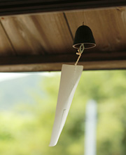 光だけでなく、風鈴のように耳で感じる涼しさもあります。目には見えないほどのかすかな風の動きを、耳でとらえ、風を感じる。そして、光と同じように、音が消えていくのを意識することで、風鈴の音にも奥行きを感じるのです。