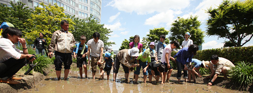 高層ビルを背景に、みんなで田植えをしている写真。それだけでもちょっと驚きですが、その田んぼが実は東京六本木の近代的なビルの屋上にあると知ると、もっと驚かれる方も多いでしょう。屋上緑化の波は、ここまで来ているんですね。今回は、夏を少しでも涼しく乗り切るために、屋上庭園と菜園について考えてみましょう。