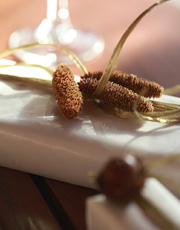 そもそも、「むすぶ」は日本人が古くから大事にしてきた行為で、そのことによって「霊(たま)」を込める印でした。「むすひ=むすび」は「産霊」とも書き、万物を生み出す霊力のこと。かつては贈りものを包む紐や水引を結ぶ時にできる結び目のことを「鬼の目」と呼んだそうですが、それも、鬼のように強い力が結び目に生まれ、相手を祝福すると考えた名残なのでしょう。こころを結ぶための贈りものに、「むすぶ」という行為が深く関わっているのは、当然のことなのかもしれませんね。