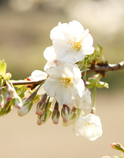 野生の桜の代表格は、宮城県以西の日本中の山林に広く分布するヤマザクラ。ソメイヨシノが全国に広まるまでは、桜といえばヤマザクラで、昔の花見の名所の桜もこのヤマザクラでした。東北北部から北海道に分布するのは、オオヤマザクラ(エゾヤマザクラ)。ヤマザクラに比べて大ぶりで紅色の濃い花を咲かせるので、ベニヤマザクラとも呼ばれます。3万本の桜で知られる花の山、吉野山に咲くのは、シロヤマザクラ。白い小さな花と一緒に赤い若葉が開くのが特徴で、その若葉が木によって異なり、開くにつれて色も変わり、山全体が微妙な色あいを醸し出します。
