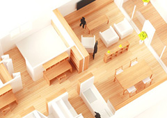 暮らしのかたちは、本当に人それぞれです。しかし、だからといって家のかたちが様々かというと、そうでもないような気がします。家のかたちは一定でも、その中での暮らしは様々にしつらえることができるはず。間仕切りや設備類は自由に選んで、好きな場所に置けばいいのです。ぎりぎりの大きさのマンションなどではたしかに設計の手腕も必要ですが、一戸建てである程度の広さがあれば、規格設計の中から選んで自分でカスタマイズするという方法もあるでしょう。