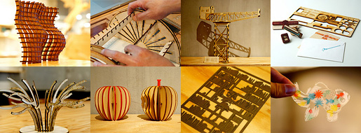 もうひとつはレーザーカッター。これは本当に万能です。コンピューターで作成したデータで、木、紙、布、皮、アクリル、金属などを一気に裁断してくれます。それだけでなく、深さもコントロールできるため、文字などを書いたりすることもできるのです。