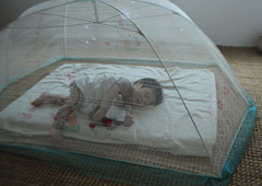 ハマダラ蚊が病原体を媒介するマラリアで命を落とす人は、現在でも年間66万人。そんな中で、効果的なマラリア予防策として評価されているのが、電力の必要もなく蚊から身を守ることのできる蚊帳なのです。日本の企業がユニセフなどと協力して蚊帳の普及に努めた結果、この10年間で死者の数は25%以上減ったとか。もっとも、その多くは網に殺虫剤を練り込んだ蚊帳。健康と環境への影響を指摘する声もあり、殺虫剤を使わずに身を守る本来の蚊帳とは少し異なるような気もしますが、深刻なマラリア被害を前にして背に腹はかえられないということなのかもしれません。