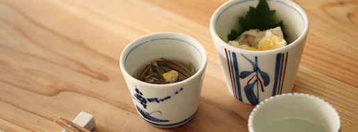 「そば猪口(ちょく・ちょこ)」という名前の器があります。文字通り、そばのつゆを入れる器ですが、おそば屋さんでは和え物(あえもの)やデザートなどの器としても使われています。一つの器で複数の用途に対応する「一器多用」。そこには、モノにあふれる暮らしを見つめ直すヒントがありそうです。