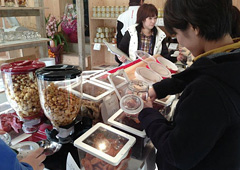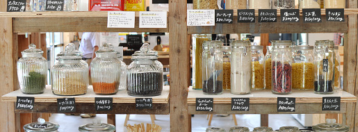 上勝百貨店がオープンしたのは、今年の1月。店内では、塩、砂糖、醤油、味噌などの調味料はもちろん、小麦粉やパスタ、お茶、ドライフルーツ、香辛料、オイル、干し野菜、地元の人が作ったお惣菜まで、約100品目がおしゃれな容器に入れられて量り売りされています。容器を持参して必要な量だけを購入すれば、包装ごみの削減になりますし、余らせて捨てるといった無駄もありません。二重にゴミを減らせることになるのです。