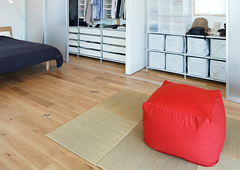 工業デザイナーの秋岡芳夫さんが著書(「暮らしのためのデザイン」新潮文庫)の中で紹介しているのは、飛騨の高山の古民家で出合った「早替わりする部屋」。その部屋は床に分厚い杉板を張った板の間で、隣の薄暗い部屋には、はがした畳が何枚もたたんで積み重ねてあったそうです。それは、隣の板の間に敷く畳で、ふだん蚕を飼ったり織物をするときにはたたみ、仏事などでお客さまをするときにだけ敷くのだとか。畳をたためば作業用の板の間になり、畳を敷けばそこが座敷に早替わりする。そんな「一室多用」の部屋は、かつて日本中いたるところで見られた、と秋岡さんは記しています。実際、明治の中ごろに出版された室内装飾の本では、祝儀・不祝儀で異なる畳の敷き方を図入りで解説しているとか。こうしてみると、ジョイントでつなぎ合わせて使う現代のユニット畳などは、畳の原型に近いものと言えるかもしれません。