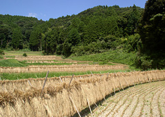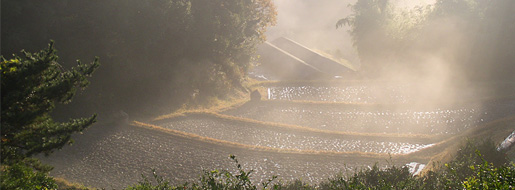 15年前、世界を放浪していた林さんは、イタリアの美しい農村やそこでの生活に魅せられ、同時にまた、そこでお世話になった農家の人から「日本の自然農」のことを教えてもらいました。そんな暮らしを日本でもできないだろうか、と探し求めているうち、たどり着いたのがこの地でした。わずか25世帯、住民の数は多いときでも200人程度という小さな村です。しかしそこには、いまだに天然の雨水だけでお米をつくることができる、保湿性の高い重粘土質の棚田があります。背後には里山の自然があり、温暖な気候にも恵まれて、豊かな暮らしが営まれてきたのです。そしてそこでは、自然の中で自然と寄り添いながら生きるための「知恵」も、脈々と受け継がれてきました。