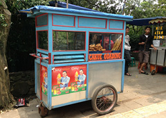 屋台は、日本だけでなくアジアの街でも日常的な風景です。日本と同じように、街を巡回する屋台は楽器を使い、また固定の屋台は街の人々の日常的な食事の場となっていて、人気の店には行列ができるほどだといいます。