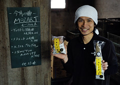 そこでは、カビ付けの全工程でモーツアルトを流し、部屋の入口にかけられた黒板には、その日に流れているモーツアルトの曲名が書かれているそうです。音楽を聴かせていなかったころに比べると、「カビののりが早く、きめが細かくなった気がする」と、四代目の瀨﨑祐介さん。
