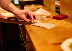 かつて、海外の人から「切っただけの刺身は料理ではない」などと言われたこともあった日本料理。しかし、包丁さばきで素材の鮮度を保ち、風味を生かし、食べものとしての新たな魂を吹き込むのが板前の技術であることを、今では世界の人々が認めています。そして、その包丁の技を支えるのがまな板。だからこそ、「庖丁人」と並んで「板前」という呼び名も生まれたのでしょう。
