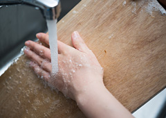 - ○熱湯消毒をする場合は、食材のタンパク質が固まってこびり付くのを避けるため、必ず汚れを落とした後で行う